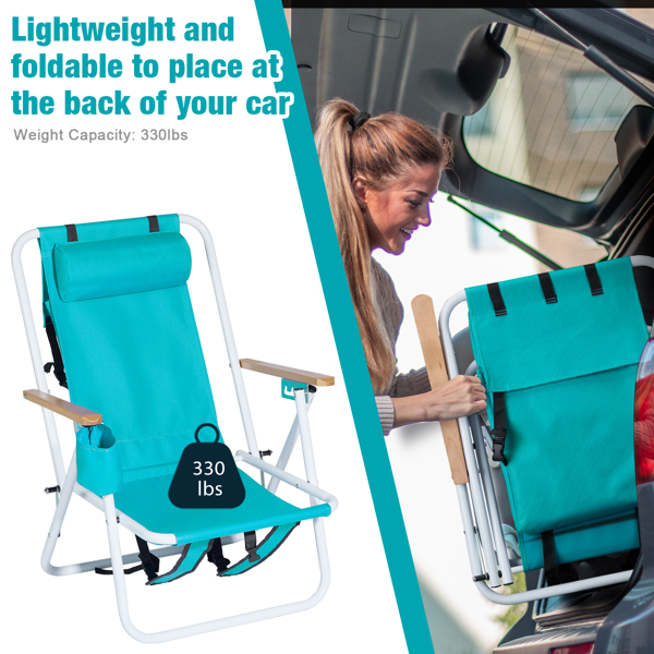 2. Travel-Friendly Design: Lightweight and foldable with convenient backpack straps, this chair is effortlessly portable, ideal for spontaneous beach trips, camping, and outdoor concerts.